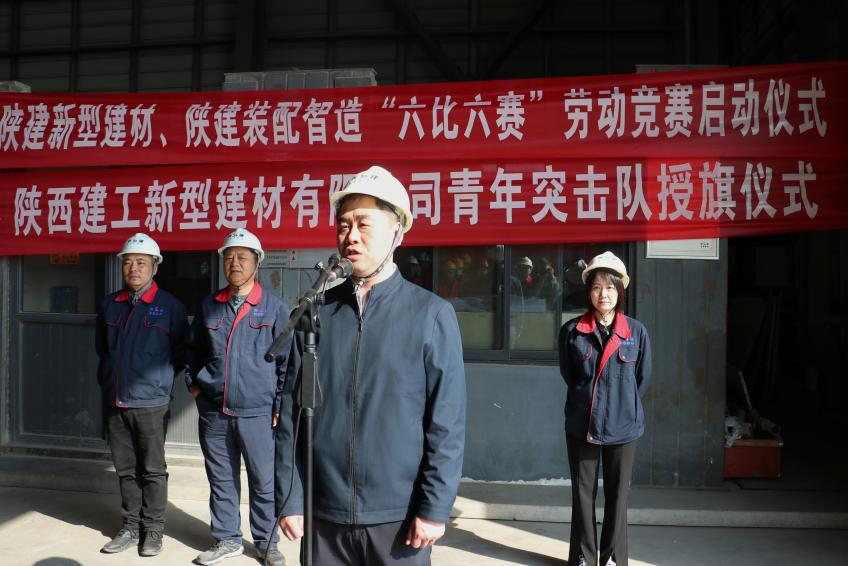 啟動儀式由陜建新型建材有限公司黨支部副書記、工會主席任曉麗主持,公司黨支部書記、董事長佀偉宣布“六比六賽”勞動競賽正式啟動并講話。