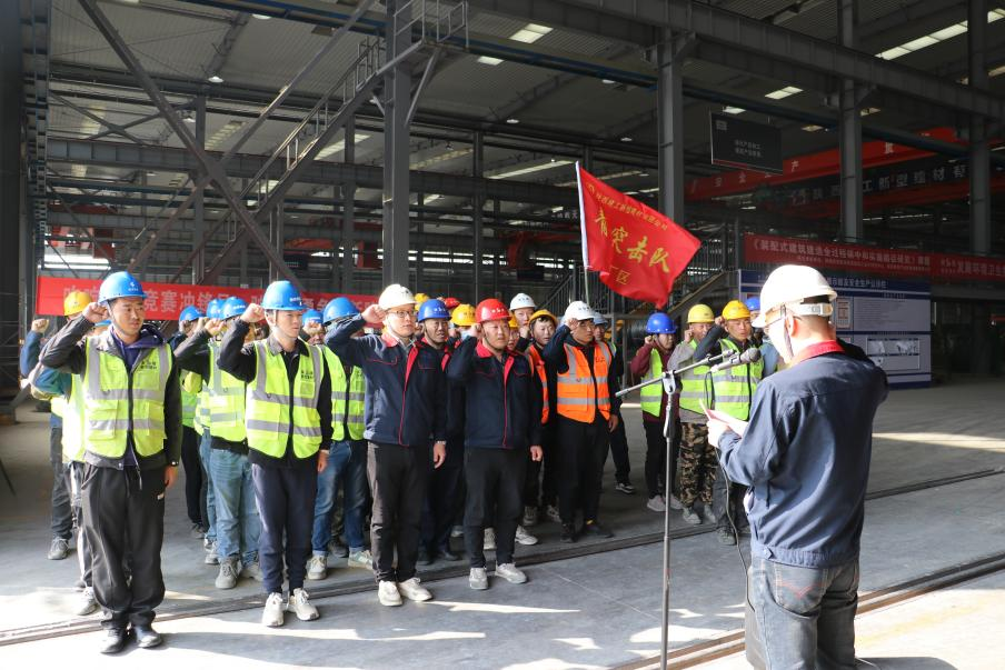 陜建新型建材有限公司副總經(jīng)理趙楚軍、副總經(jīng)理南凱、副總經(jīng)理張斌,公司團總支書記張揚,生產(chǎn)管理部、各生產(chǎn)車間全體職工及勞務(wù)班組代表參加儀式。