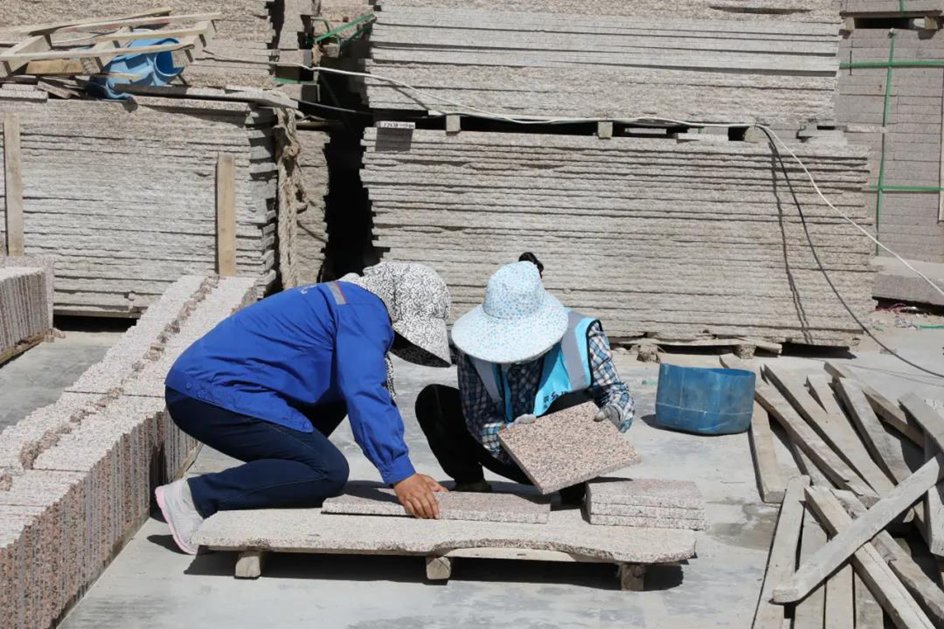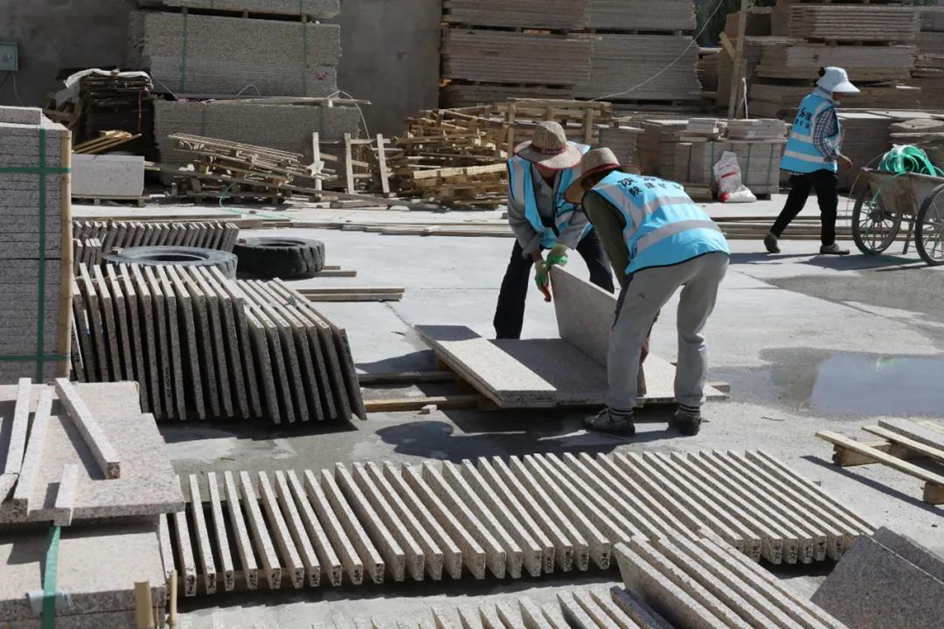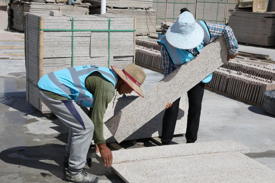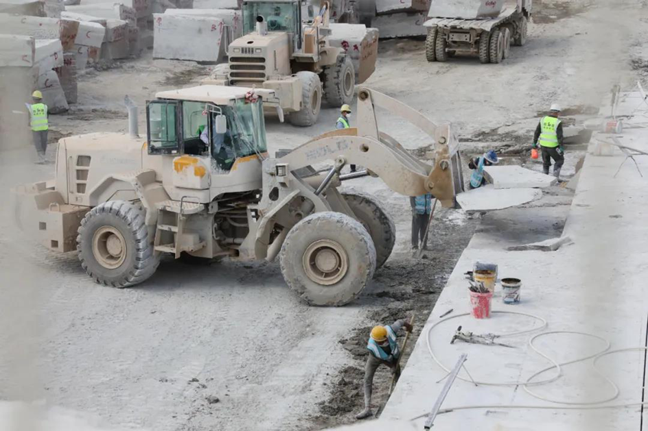 烈日炎炎下,曠工在作業(yè)面開采荒料