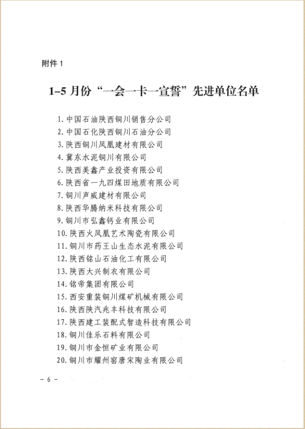 此次公司榮獲銅川市1-5月份一會(huì)一卡一宣誓先進(jìn)單位,公司員工吳進(jìn)軍榮獲一會(huì)一卡一宣誓先進(jìn)個(gè)人稱號(hào),是對(duì)公司安全生產(chǎn)工作的充分肯定,也是公司全體職工弘揚(yáng)奮進(jìn)精神、矢志艱苦創(chuàng)業(yè)的一個(gè)縮影,公司全體職工將繼續(xù)立足崗位、埋頭苦干,為公司持續(xù)快速發(fā)展和集團(tuán)高質(zhì)量發(fā)展貢獻(xiàn)力量。