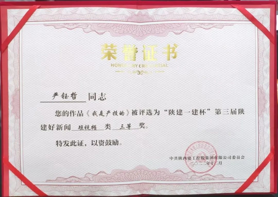 12月13日,2023年度《陜西建筑報(bào)》發(fā)行工作暨表彰大會(huì)在西安召開,陜建產(chǎn)投集團(tuán)報(bào)送的《我是產(chǎn)投的》被授予第三屆“陜建好新聞”短視頻類三等獎(jiǎng)。投資集團(tuán)