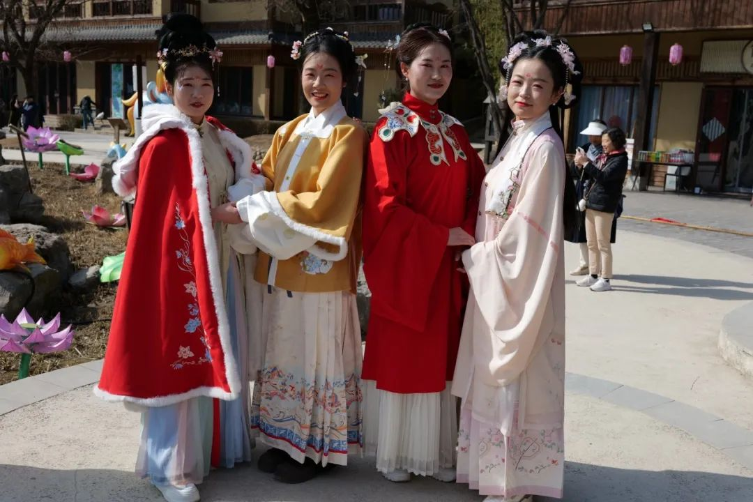 漢服,作為中華民族的傳統(tǒng)服飾,承載著禮儀文化的豐富底蘊。在化妝師的巧手下,漢服煥發(fā)新生,仿佛穿越了千年的時光。平日里忙于工作的女職工們換上華美的漢服,將秀發(fā)盤起,佩戴上精致的珠釵步搖。她們涂抹胭脂、描繪秀眉,點綴口紅、貼上花鈿,從“女白領(lǐng)”瞬時化身為長袖飄飄、衣袂搖曳的“漢服女神”。