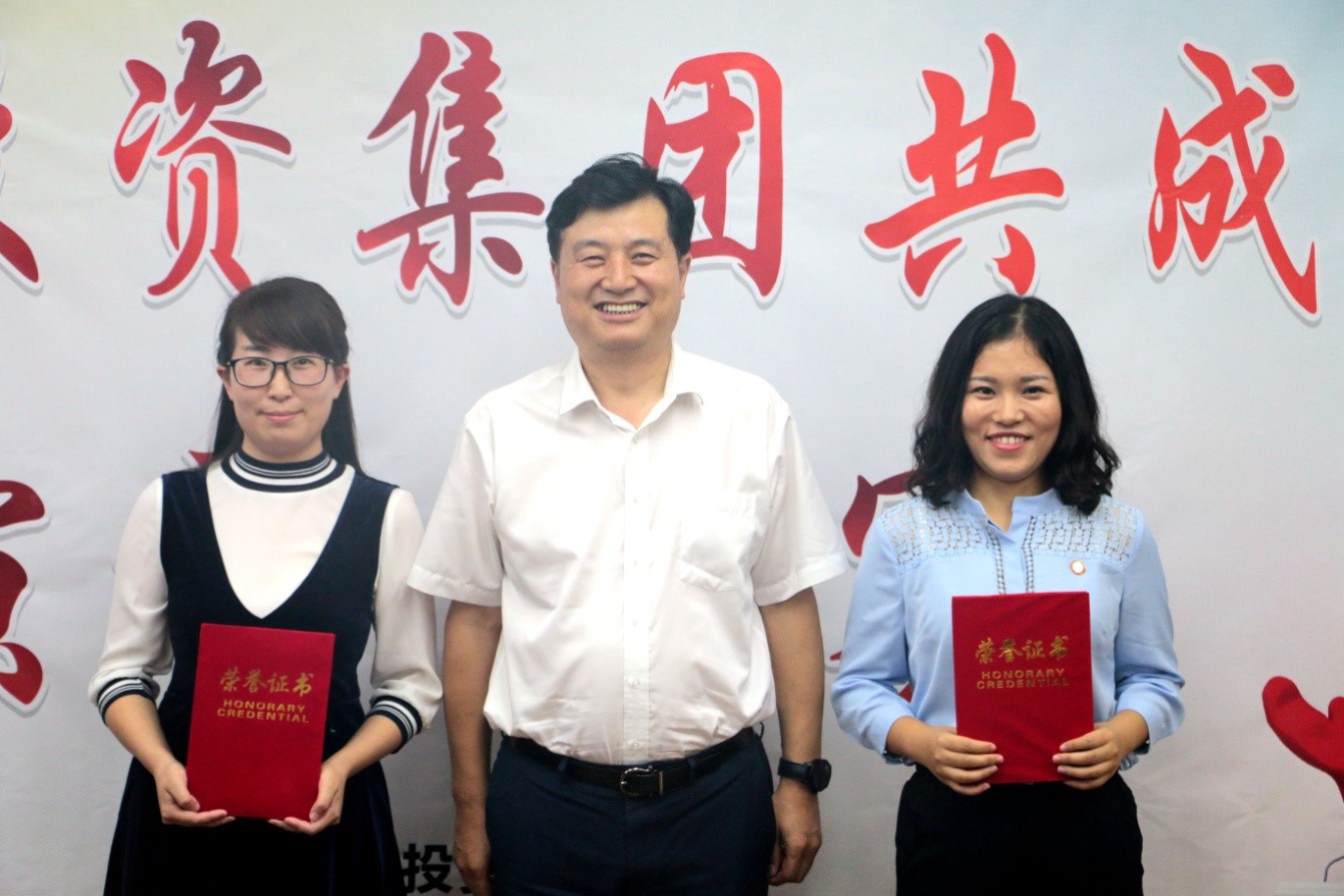 集團公司黨委副書記、工會主席王拯民、董事肖建軍、副總經(jīng)理劉新龍為三等獎獲得者頒獎